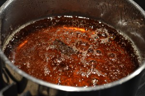 أولا :نعمل القطر بوضع جميع المقادير في قدر ووضعها على النار متوسطة الحرارة حتى تثقل الشيرة قليلا (يحتاج 30 ل45 دقيقة) ثم نتركها تبرد