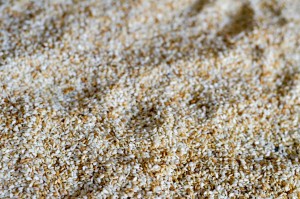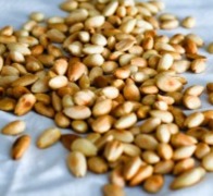 ثانيا: نقوم بتحميص اللوز والسمسم في الفرن أو على نار هادئة حتى نحصل على لون أشقر