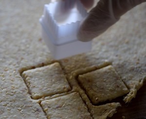 نتركها ترتاح 10 دقائق ثم نقوم بفردها وتقطيعها لمربعات أو دوائر