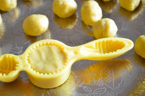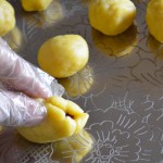 قسمي حشوة التمر لكرات وكذلك العجينة لكرات أكبر ..