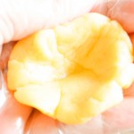 رققي كرة العجين في راحة يدك وارفعي حافتها لتصبح عميقة ثم املأي التجويف بالحشوة واغلقس العجينة
